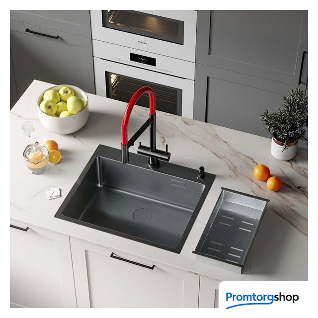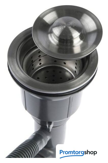 Комплектация | сифон с гофрой, коландер из нержавеющей стали, дозатор для моющих средств, корзинчатый вентиль, декоративная накладка, 2 заглушки на отверстия, комплект креплений к столешнице |