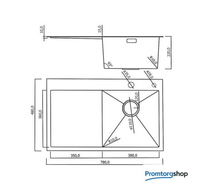 Диаметр сливного отверстия | 3.5" |