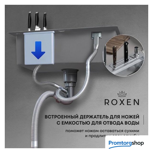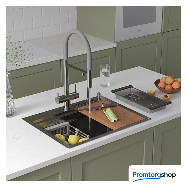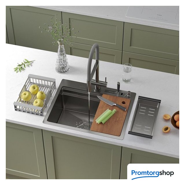 Комплектация | сифон, держатель для ножей, разделочная доска,корзина из нержавеющей стали,коландер телескопический,дозатор для моющих средств,2 заглушки на отверстия, комплект креплений к столешнице |