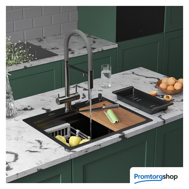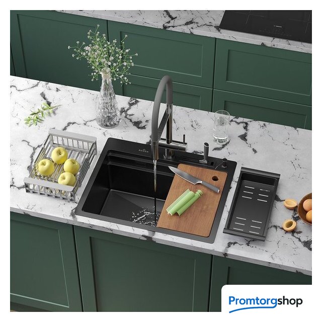 Комплектация | сифон, держатель для ножей, разделочная доска,корзина из нержавеющей стали,коландер телескопический,дозатор для моющих средств,2 заглушки на отверстия, комплект креплений к столешнице |