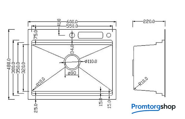 Диаметр сливного отверстия | 3.5" |