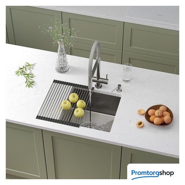 Комплектация | ✅стальная мойка✅сифон✅корзинчатый вентиль✅декоративная накладка✅дозатор для моющих средств✅ролл-мат✅комплект креплений |