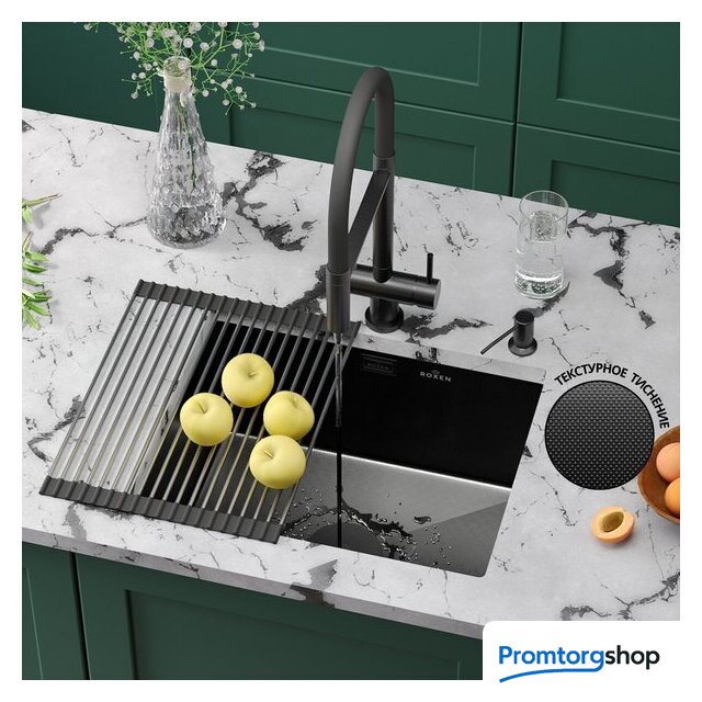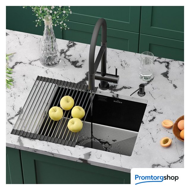 | Комплектация | ✅стальная мойка, ✅сифон click-clack, ✅корзинчатый вентиль, ✅декоративная накладка, ✅дозатор для моющих средств, ✅ролл-мат, ✅комплект креплений |