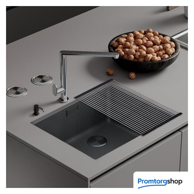 Комплектация | ✅стальная мойка✅сифон✅корзинчатый вентиль✅декоративная накладка✅дозатор для моющих средств✅ролл-мат✅комплект креплений |