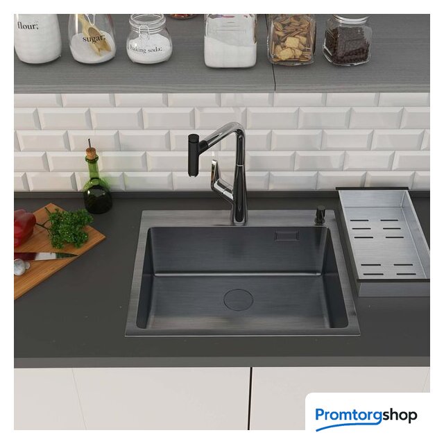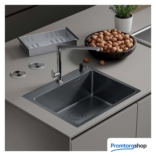 Комплектация | сифон с гофрой, коландер из нержавеющей стали, дозатор для моющих средств, корзинчатый вентиль, 2 заглушки на отверстия, комплект креплений к столешнице |