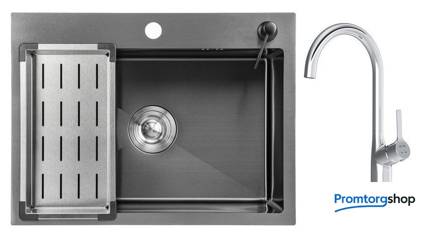 | Комплектация | мойка кухонная Saniteco 6045 Nano (с сифоном, дозатором и коландером); Смеситель AM.PM Spike F9S07000 (хром) |