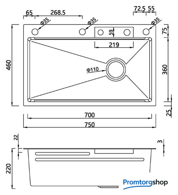 | Длина мойки | 75 см |