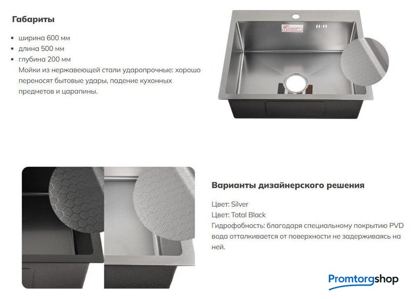 Длина мойки | 60 см |