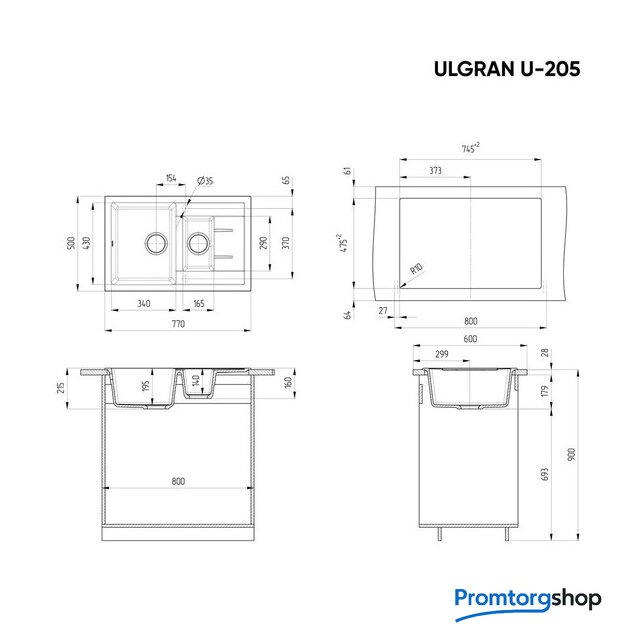 | Ширина мойки | 77 см |