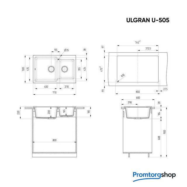 врезная на столешницу, искусственный камень, размеры: 77x50 см, в шкаф 80 см