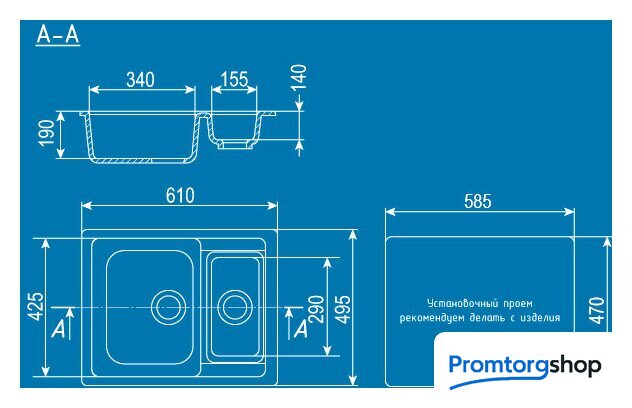 | Глубина мойки | 49.5 см |