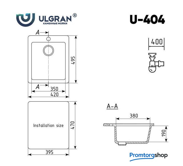 врезная на столешницу, искусственный камень, размеры: 42x49 см, в шкаф 40 см