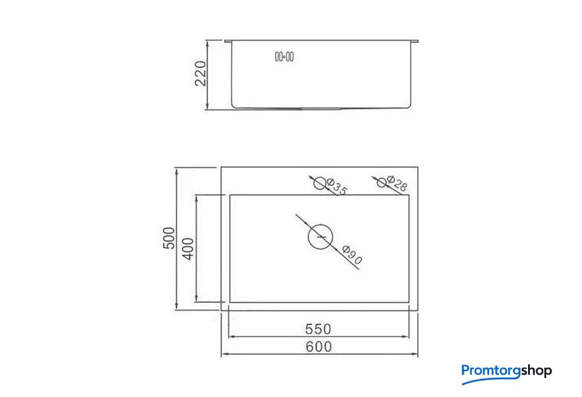 Перелив | в основной чаше. Намеченные отверстия 2 шт |