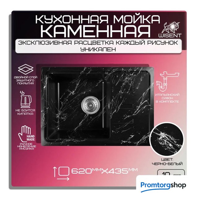 Цвет | мрамор черно-белый, черный (с белыми прожилками) |