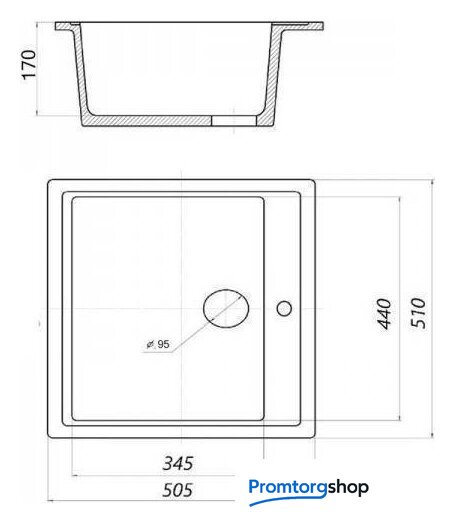 врезная на столешницу, искусственный камень, размеры: 50.5x51 см