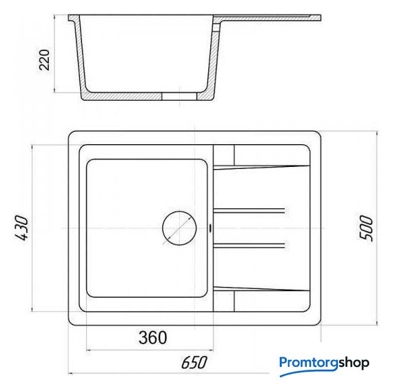 врезная на столешницу, искусственный камень, размеры: 51x65 см
