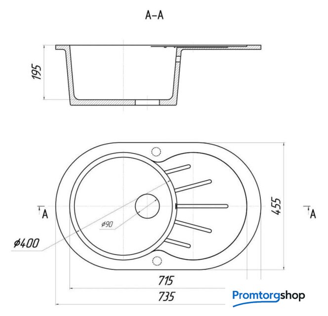 врезная на столешницу, искусственный камень, размеры: 45.5x73.5 см