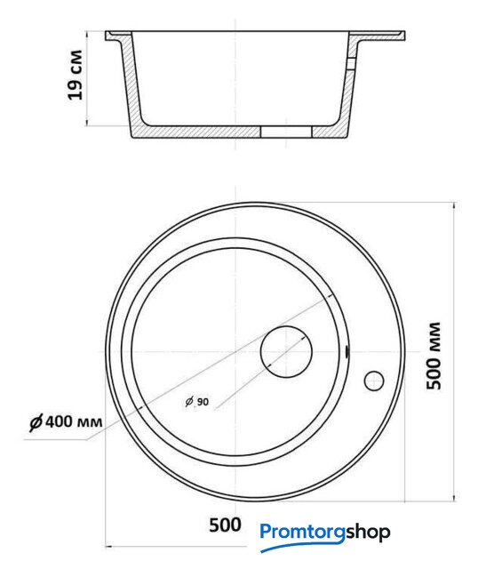 врезная на столешницу, искусственный камень, размеры: 50x50 см