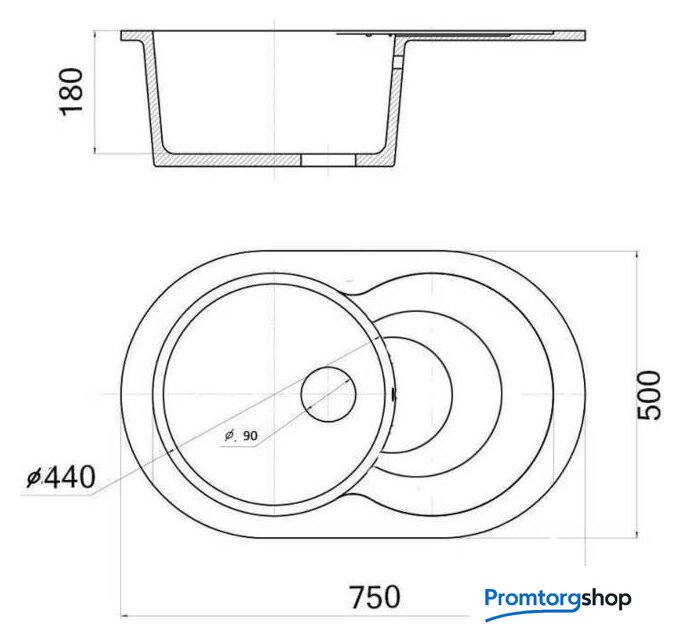 врезная на столешницу, искусственный камень, размеры: 50x75 см, в шкаф 45 см