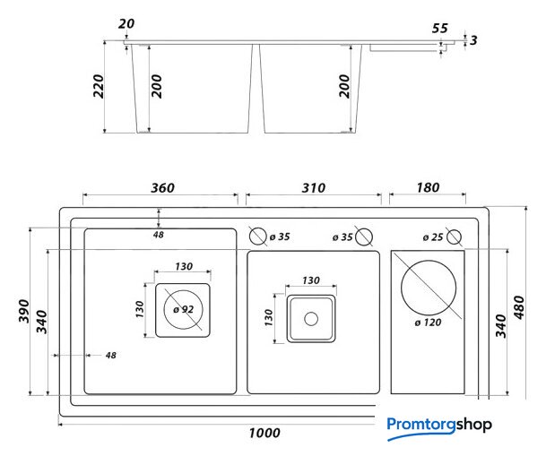 Ширина мойки | 48 см |