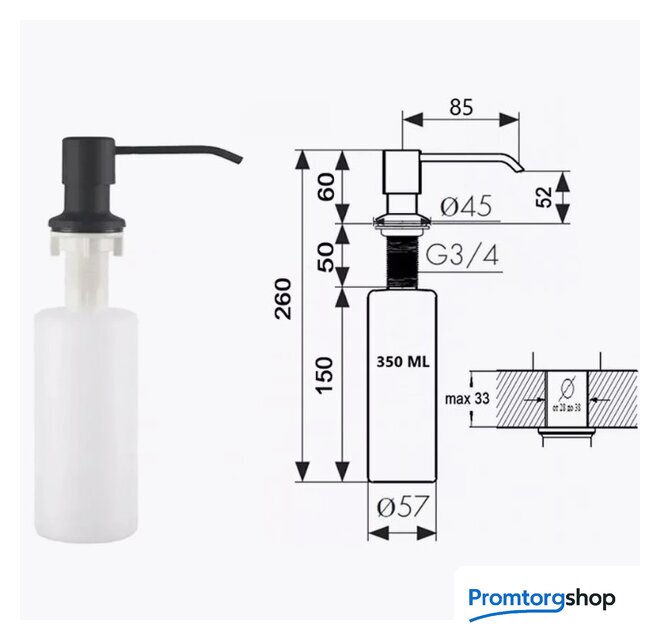 Комплектация | сифон (с гофрой), дозатор для моющего средства, ринзер |