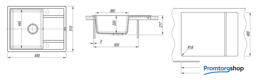 врезная на столешницу, искусственный камень, размеры: 65x51 см, в шкаф 50 см