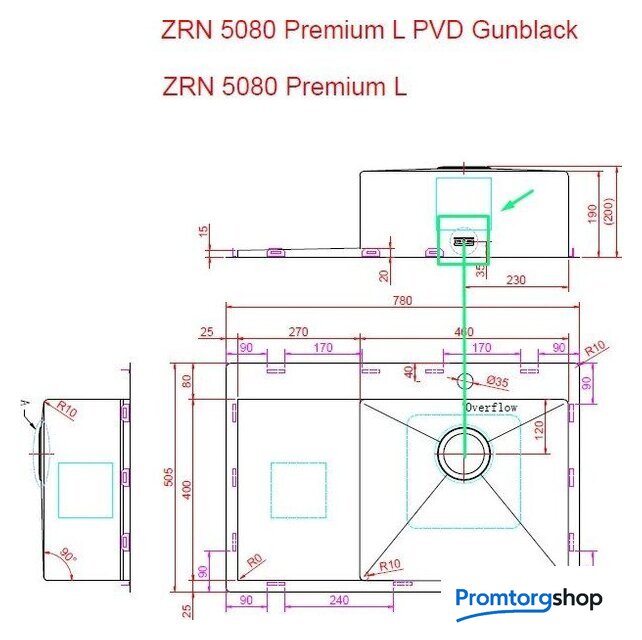 врезная на столешницу, нержавеющая сталь, размеры: 78x50.5 см, в шкаф 60 см