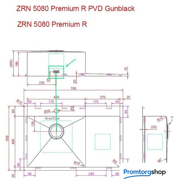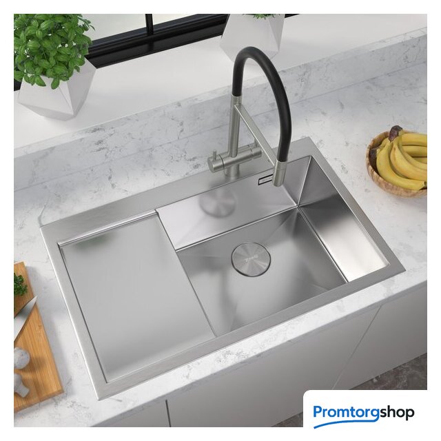 врезная на столешницу, нержавеющая сталь, размеры: 78x50.5 см, в шкаф 60 см