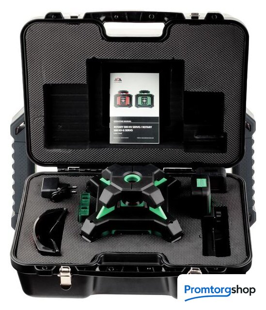 Комплект поставки | Лазерный нивелирПриемник лазерного лучаКрепления приемника лазерного лучаПульт ДУЛазерная мишеньЛазерные очкиЗарядное устройствоПластиковый кейсИнструкция |