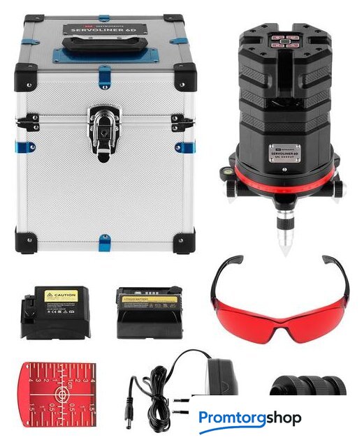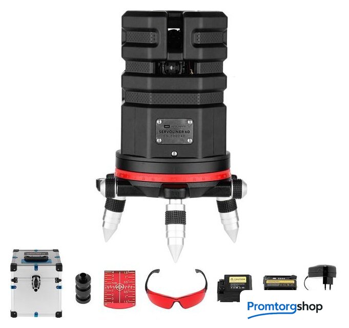 Комплект поставки | - Лазерный уровень- Литиевый аккумулятор- Зарядное устройство- Лазерные очки- Магнитная мишень- Винт-удлинитель- Батарейный отсек- Кейс- Руководство по эксплуатации |
