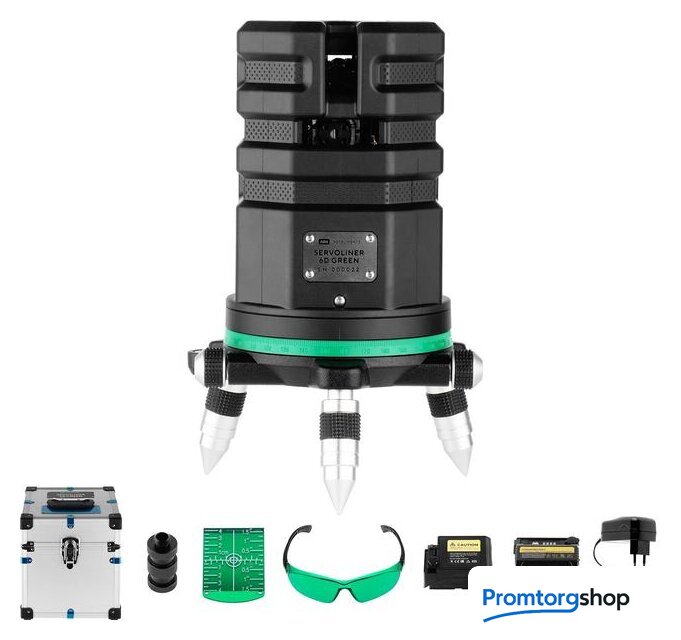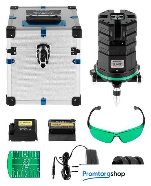 | Комплект поставки | - Лазерный уровень- Литиевый аккумулятор- Зарядное устройство- Лазерные очки- Магнитная мишень- Винт-удлинитель- Батарейный отсек- Кейс- Руководство по эксплуатации |