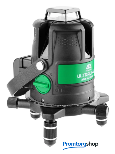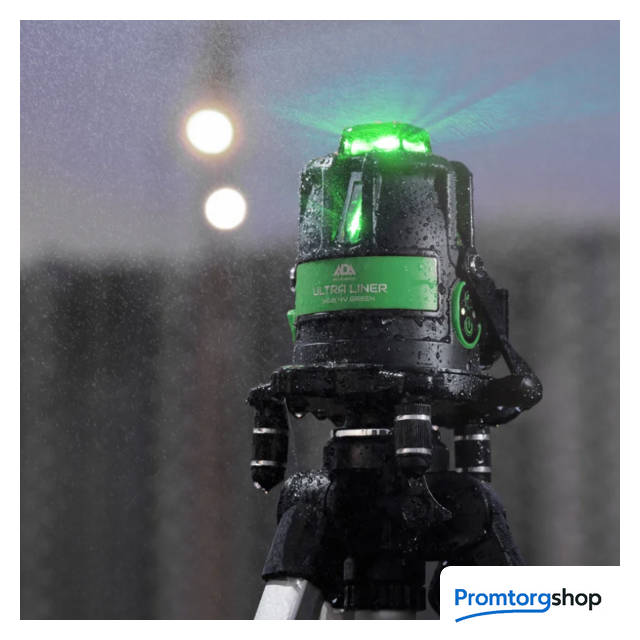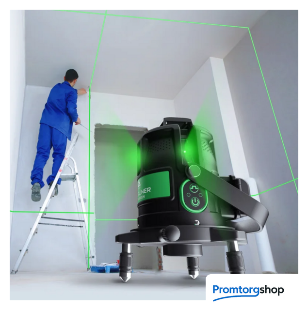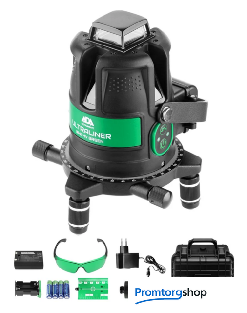 Тип | Лазерный уровень UltraLiner 360 4V Green — профессиональный лазерный уровень для использования в строительстве и ремонте. UltraLiner 360 4V Green прибор с поворотным основанием и комбинированной разверткой лазерных лучей: круговая горизонтальная линия 360°, лазерный отвес (точка), плюс перпендикулярные вертикальные плоскости. Такая компоновка лазерных линий является оригинальной и наиболее полной. Благодаря этому прибор имеет максимальный функционал и подходит для всех видов разметочных работ. Уникальность UltraLiner 360 4V Green в зеленом цвете лазерного луча. Зеленый лазерный луч гораздо лучше видно чем красный при одинаковых условиях. Уровень проецирует яркие, тонкие линии. UltraLiner 360 4V Green можно установить в любом месте. Горизонтальная линия проецируется по кругу (на 360 градусов без прерывания), по всему периметру. Для вертикальной разметки можно поочередно включать четыре вертикальные лазерные линии. Все лазерные линии (вертикальные и горизонтальная) пересекаются между собой под углом 90°. Лазерный отвес поможет точно установить UltraLiner 360 4V Green на начальную точку на полу. Механизм UltraLiner 360 4V Green специально спроектирован для максимальной устойчивости к тяжелым условиям эксплуатации на строительной площадке. Легкая и одновременно прочная металлическая конструкция механизмов уровня сводит к минимуму возможные повреждения при падении. Внешняя, мощная резиновая защита корпуса, внутренние ребра жесткости корпуса, элементы пыле-влаго защиты - максимально защищают прибор. UltraLiner 360 4V Green легко противостоит ударам, строительной пыли и влаге. Выравнивание лазерных линий происходит автоматически при включении уровня. Лазерный уровень UltraLiner 360 4V Green отличается высокой точностью — погрешность составляет не более 0.2 миллиметра на метр. В основании корпуса расположена поворотная часть для плавного и точного наведения вертикальных линий. В поворотном механизме используются подшипники плавного скольжения, Ручкой плавной подстройки прибор поворачивается вправо-влево на 360° вокруг своей оси. Наведение на нужную точку точное и простое. Переключатель блокировки имеет промежуточное положение. Лазерные линии будут проецироваться с необходимым наклоном. UltraLiner 360 4V Green имеет специальный режим: работа с приемником. Приемник LR-60 Green обнаруживает лазерную линию на дистанции до 70 метров. Для хранения и транспортировки UltraLiner 360 4V Green комплектуется высокопрочным пластиковым кейсом. Кейс усилен ребрами жесткости и легко выдерживает удары, падения и различные весовые нагрузки. Страна производства: Китай |