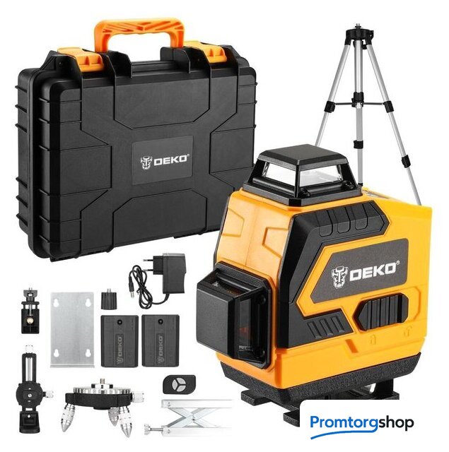 | Комплект поставки | Лазерный уровень - 1 шт.Штатив - 1 шт.Адаптер для штатива - 1 шт.Фиксатор - 1 шт.Пульт дистанционного управления - 1 шт.Металлическая пластина для крепления - 1 шт.Кронштейн (состоит из 2х деталей) - 1 шт.Зарядное устройство - 1 шт.Подъемная платформа - 1 шт.АКБ - 2 шт.ИнструкцияКейс |