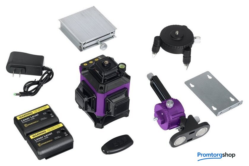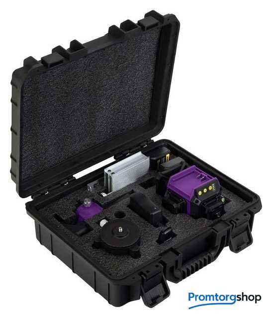 | Комплект поставки | Лазерный уровень, магнитное настенное крепление, подъемная платформа (микролифт), пульт дистанционного управления, аккумулятор – 2 шт., кабель для зарядки с адаптером, кейс, инструкция по эксплуатации и гарантийный талон |