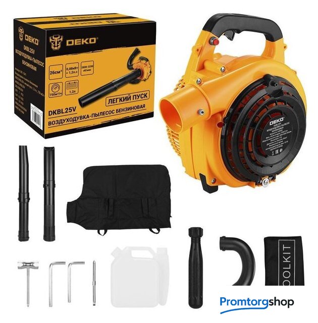 Комплектация | - Воздуходувка - 1 шт.- Верхняя труба подачи воздуха - 1 шт.- Нижняя труба подачи воздуха - 1 шт.- Гнутая труба - 1 шт.- Верхняя труба пылесоса - 1 шт.- Нижняя труба пылесоса - 1 шт.- Мешок пылесборник - 1 шт.- Мешочек для инструментов - 1 шт.- Свечной ключ - 1 шт.- Шестигранный ключ - 2 шт.- Двухсторонняя отвертка - 1 шт.- Емкость для топлива - 1 шт.- Руководство по эксплуатации- Коробка |
