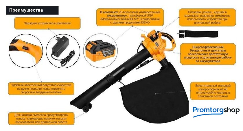 | Комплектация | - Основной корпус - 1 шт;- Верхняя насадка - 1 шт;- Нижняя насадка (нижняя насадка с колесами и нижняя насадка) - 2 шт;- Мусоросборник - 1 шт;- АКБ - 1 шт;- Плечевой ремень - 1 шт;- Зарядное устройство - 1 шт;- Руководство по эксплуатации - 1 шт. |