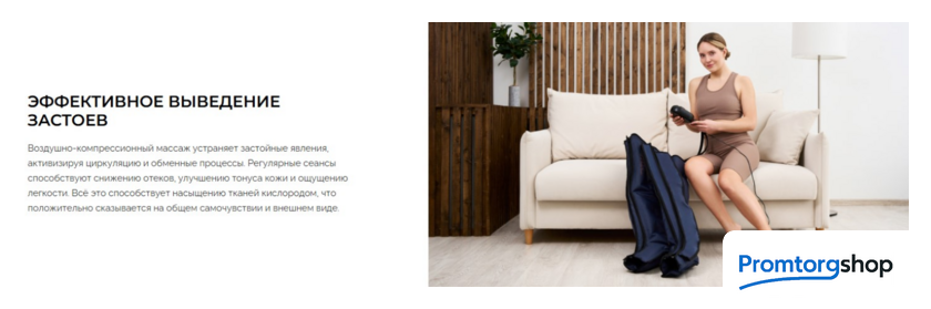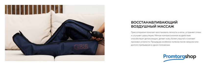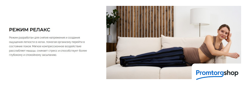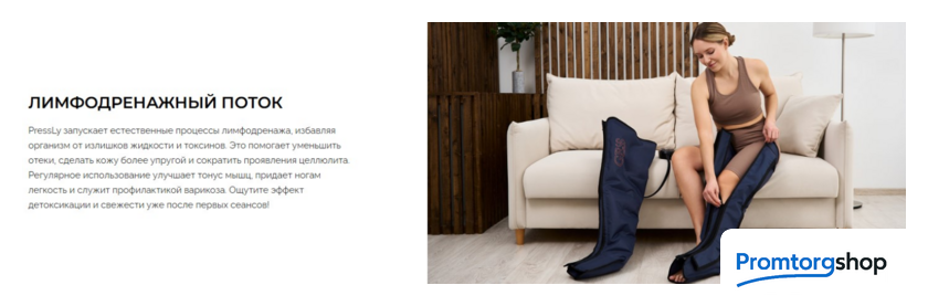 | Тип | массажер электронный. Массажер для ног «PressLy» — инновационный воздушно—компрессионный аппарат для прессотерапии, нацеленный на комплексное восстановление и оздоровление стоп, икр и бедер. Попробуйте как автоматические режимы с функцией расслабляющего массажа или шиацу, так и точечное воздействие: только стопы, икры, бедра. Регулируйте интенсивность подачи воздуха одним нажатием. Фиксаторы на молнии и дополнительные вставки обеспечивают надежную посадку на любую ногу. «PressLy» запускает естественные процессы лимфодренажа, избавляя организм от излишков жидкости и токсинов. Это помогает уменьшить отеки, сделать кожу более упругой и сократить проявления целлюлита. Регулярное использование улучшает тонус мышц, придает ногам легкость и служит профилактикой варикоза. Ощутите эффект детоксикации и свежести уже после первых сеансов. Прессотерапия помогает восстановить легкость в ногах, устраняет отеки и улучшает циркуляцию. Мягкое компрессионное воздействие способствует детоксикации, делает кожу более упругой и снимает признаки усталости. Процедура особенно полезна после нагрузки или долгого пребывания в одном положении. Воздушно–компрессионный массаж устраняет застойные явления, активизируя циркуляцию и обменные процессы. Регулярные сеансы способствуют снижению отеков, улучшению тонуса кожи и ощущению легкости. Всё это способствует насыщению тканей кислородом, что положительно сказывается на общем самочувствии и внешнем виде. Настройте уход под свои ощущения, выбрав проработку бедер, икр или стоп отдельно. Точечная прессотерапия помогает ускорить обменные процессы, снять локальное напряжение и восстановить тонус мышц. Такой формат массажа делает каждую процедуру точной, глубокой и особенно полезной для восстановления после нагрузок или малоподвижного дня. Режим «Релакс»: разработан для снятия напряжения и создания ощущения легкости в ногах, помогая организму перейти в состояние покоя. Мягкое компрессионное воздействие расслабляет мышцы, снимает стресс и способствует более глубокому и спокойному засыпанию; Режим «Шиацу»:имитирует технику японского точечного массажа, стимулирующего кровообращение и активизирующего работу внутренних органов. Интенсивные движения воздушных волн уменьшают усталость и возвращают ногам ощущение комфорта; Автоматический режим: для активации режима «Auto» удерживать кнопку On/Off в течение 3 секунд — после этого загорится индикатор, и устройство начнет работу с первой степенью интенсивности. Этот режим предназначен для комфортного и сбалансированного воздействия, сочетая разные техники массажа для расслабления, улучшения циркуляции и снятия напряжения в ногах. Страна производства: Китай |