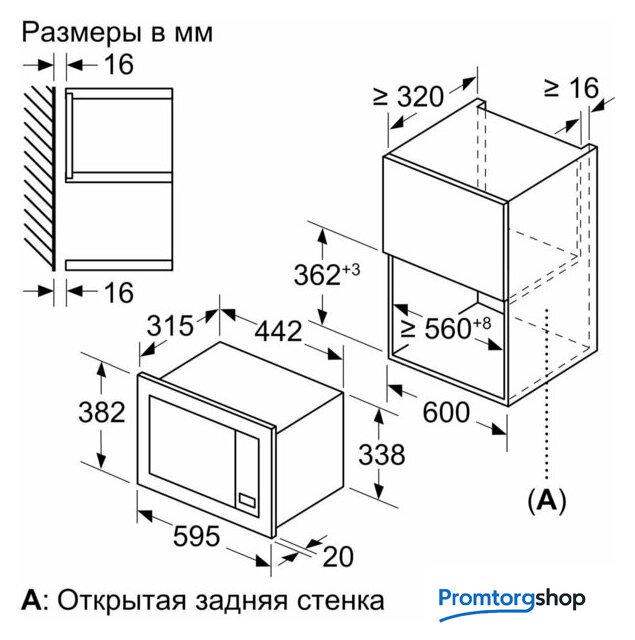 Размеры ниши для встраивания |