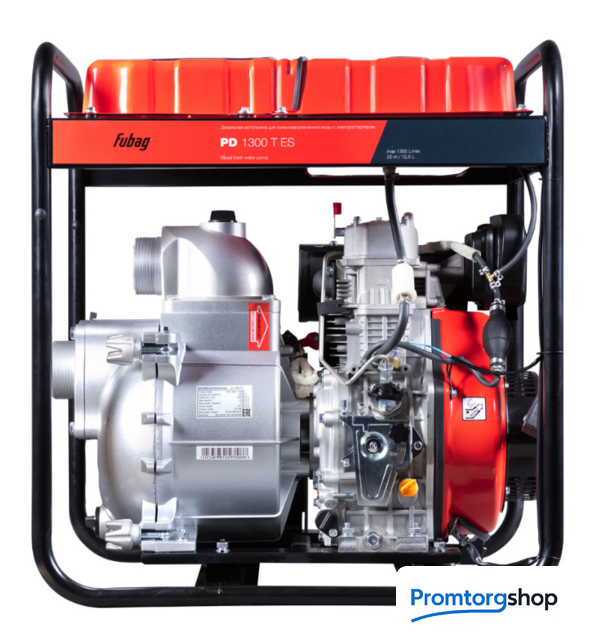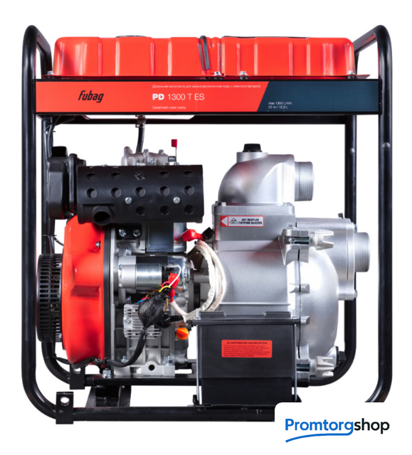 | Применение | Мотопомпа FUBAG PD 1300 T ES - мотопомпа для сильнозагрязненной воды Дизельная мотопомпа FUBAG - это надежное автономное устройство, специально спроектированное для перекачивания сильно загрязненной воды. С производительностью 1300 литров в минуту, она успешно справляется с грязной водой, содержащей абразивные включения диаметром до 27 мм. Модель PD 1300 T ES демонстрирует отличные результаты при откачке воды с песком и мелкими камнями. Оснащенная дизельным двигателем мощностью 6,9 кВт с воздушным охлаждением, она идеально подходит для тяжелых условий эксплуатации. Графитовые сальники и усиленная конструкция насосной части, выполненной из термически обработанного чугуна, обеспечивают длительный срок службы и надежность работы устройства. Система запуска дизельного двигателя осуществляется легко благодаря электростартеру. Для обеспечения надежности эксплуатации, металлическая рама и специальная накладка над насосной частью защищают критически важные узлы помпы от повреждений в условиях интенсивного использования. Эргономичная форма устройства обеспечивает удобный доступ для заливки воды в насос. Благодаря вместительному топливному баку объемом 12,5 литров, мотопомпа способна работать без дозаправки до 7,5 часов. Все ключевые компоненты легко доступны для проведения профилактических работ, что упрощает техническое обслуживание. Для комфорта при транспортировке, устройство может дополнительно оснащаться стандартным набором колес и ручек от FUBAG (опция). |