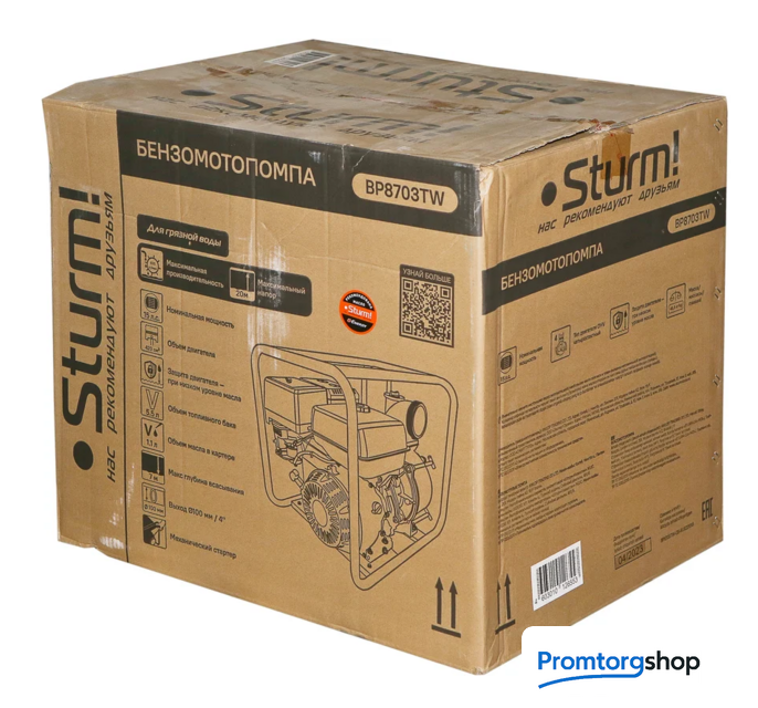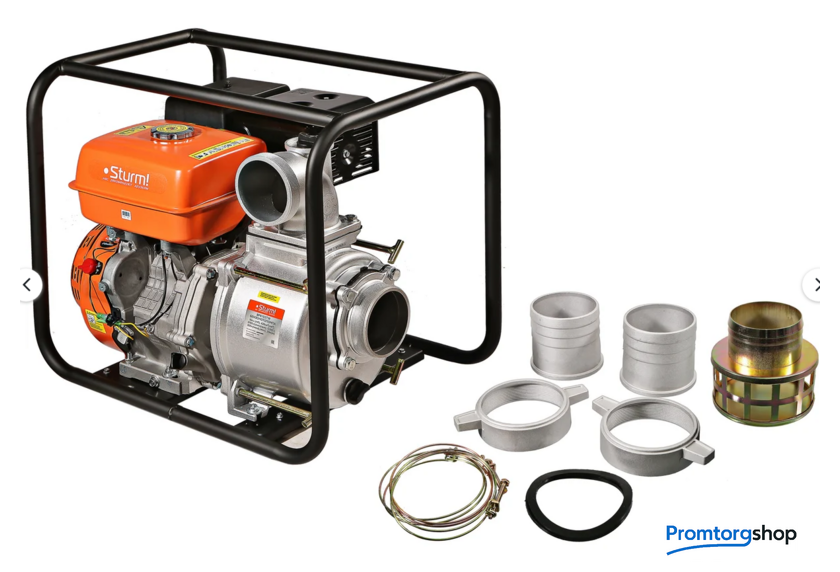 Применение | Бензиновая мотопомпа, со штуцерами диаметром 4 дюйма, применяется для откачки грязной воды из затопленных помещений, а также котлованов, траншей, погребов, колодцев глубиной до 7 м. Оптимальна для проведения земляных работ, так как может работать с грязной водой, содержащей фракции размером до 28 мм. Используется также для подачи чистой воды на стройку, небольшое предприятие, на дачный участок и в систему полива. Особенности: надежность и долговечность — двигатель из высококачественных комплектующих обеспечивает длительную стабильную работу мотопомпы; низкий расход топлива — увеличенный бак объемом 5.5 л позволяет работать до 90 минут без дозаправки; защита двигателя — при низком уровне масла происходит автоматическое отключение мотопомпы для предотвращения ее поломки; возможность изменения интенсивности потока воды — конструкцией предусмотрен регулятор оборотов двигателя; быстрый запуск — двигатель легко заводится в любую погоду благодаря ручному стартеру; прочность — стальная рама защищает двигатель и насосную часть от механических повреждений; устойчивость — широкое основание позволяет установить мотопомпу даже на неровной поверхности; необходимые инструменты в комплекте — к мотопомпе прилагаются хомуты для подключения шланга. Преимущества Sturm BP8703TW Высокая производительность – позволяет быстро откачивать воду из котлованов, затопленных участков, водоемов Работа с сильно загрязненной водой Автономность и мобильность Универсальность применения. Комплектация Соединение впускного и выпускного шлангов (включая уплотнение) 2 комп Контргайка 2 шт. Хомут 3 шт Входной фильтр Торцевой ключ Резиновые ножки 4 шт.Страна производства: Китай. |
