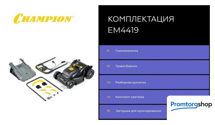 | Комплект поставки | газонокосилка - 1 шт. травосборник - 1 шт. рукоятка рабочая - 1 шт. скоба для хранения шнура - 1 шт. руководство, гарантийный талон, коробка |