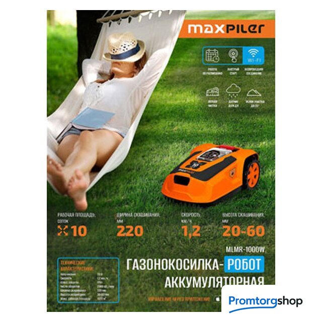 Тип | Газонокосилка-робот, Bluetooth 4.2, Диапазон частот Wi-Fi 2.400 - 2.4835ГГц, Число оборотов 2900 об/мин |