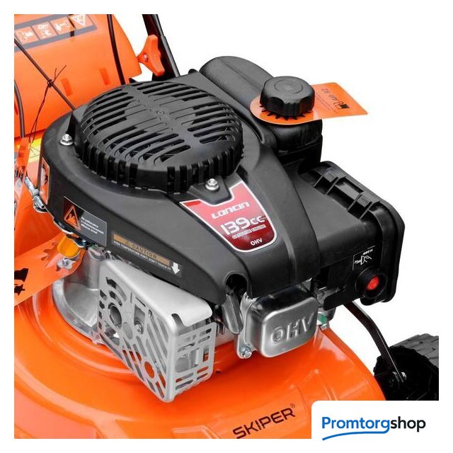 Комплектация | 1. Газонокосилка.2. Ручки3. Комплект болтов4. 2 правых колеса (с правой резьбой)5. 2 левых колеса (с левой резьбой)6. Свечной ключ7. Инструкция8. Гарантийный талон9. Дополнительный нож |