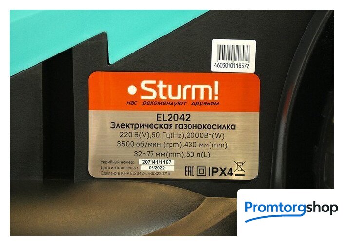 | Комплектация | - газонокосилка,, - рукоятка (верхняя и нижняя части),, - барашки крепления рукояток,, - травосборник,, - болты (2 шт),, - шайбы (2 шт),, - фиксатор кабеля (2 шт),, - инструкция по эксплуатации,, - инструкция по безопасности |