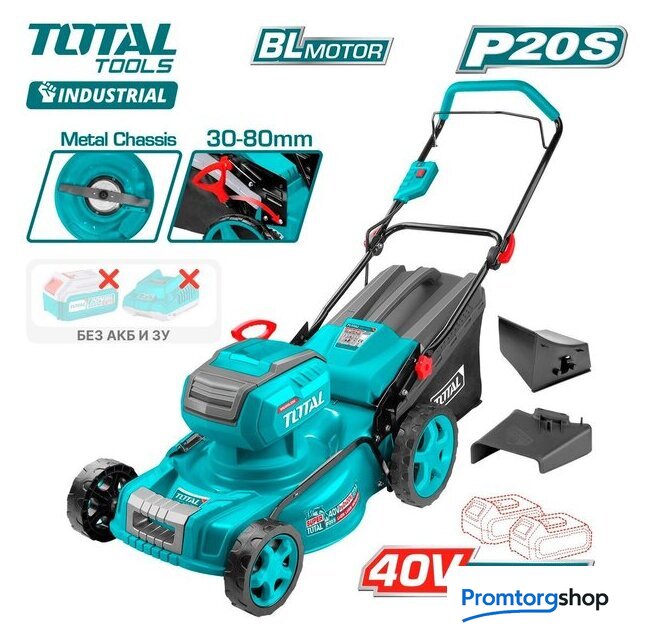 Комплектация | - Газонокосилка аккумуляторная - 1 шт.- Травосборник 60 л - 1 шт.- Заглушка для мульчирования - 1 шт.- Устройство бокового выброса - 1 шт.- Инструкция- Коробка |