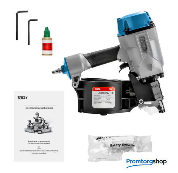 | Тип | Toua CN70 гвоздезабивной пневматический пистолет барабанного типа работает с гладкими, ершеными и винтовыми гвоздями соединенными между собой проволокой. Обладает высокой производительностью, большим ресурсом и низкой стоимостью точки крепления. Подходит для работ на производстве и конвейерной сборки. Toua CN70 предназначен для паллетного и мебельного производства, когда инструмент работает с горизонтальным материалом. Тяжелый корпус инструмента позволяет увеличивать поточную стрельбу на отскоке и экономить силы оператора. Барабанные пистолеты ориентированы на работу в вертикальном положении, что делает их идеальным выбором для конвейерных работ. В качестве расходников для них применяются: гладкие, ершёные и винтовые гвозди (соединённые между собой проволокой). Барабанные пистолеты обладает очень большой скорострельностью и способны производить по два-три выстрела в секунду. Барабан рассчитанный на большое количество расходников и быстрая перезарядка позволяет достигать поистине "стахановского" темпа работы. |