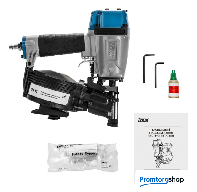 | Комплектация | пневматический нейлер защитные очки масло для смазки набор шестигранных ключей |
