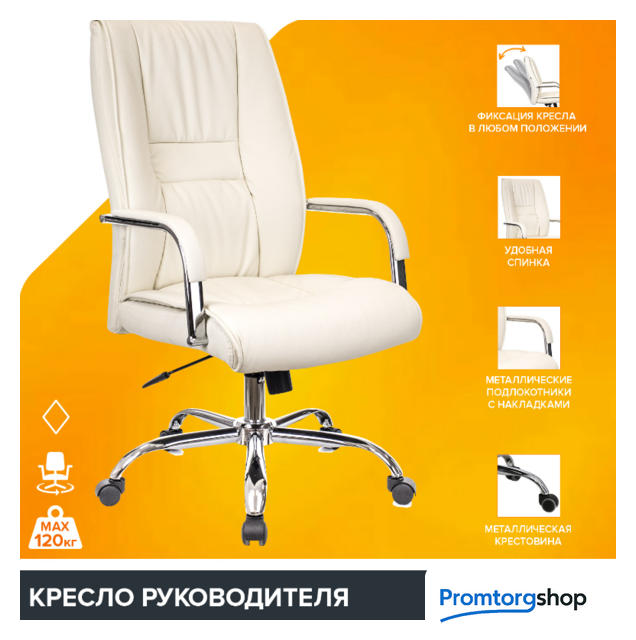 | Тип | Изысканная элегантность сочетается с превосходным комфортом в кресле руководителя Everprof Kent TM, обитом качественной кремовой экокожей. Легкость и элегантность: Кремовая экокожа: Кресло в нейтральном кремовом оттенке идеально подойдет для любого интерьера, добавляя к нему легкость и элегантность. Безупречный комфорт: Поясничная поддержка: Дополнительный комфорт обеспечивается благодаря поясничной поддержке. Механизм «ТопГан Мульти»: Уникальная система качания с фиксацией позволяет наслаждаться комфортом в любом положении. Долговечная конструкция: Крестовина из хромированной стали: Прочность и устойчивость гарантированы благодаря качественной стальной крестовине. Газ патрон: Система позволяет легко регулировать высоту сидения, обеспечивая идеальное положение. Отличная мобильность и практичность: Подлокотники с экокожей: Металлические подлокотники, обитые экокожей, подчеркивают роскошный стиль и добавляют удобство. Ролики для паркета: С диаметром штока 11 мм идеально подходят для паркетных полов и обеспечивают легкость передвижения. Универсальный выбор: Кресло подходит для пользователей ростом до 200 см и выдерживает нагрузку до 120 кг. |