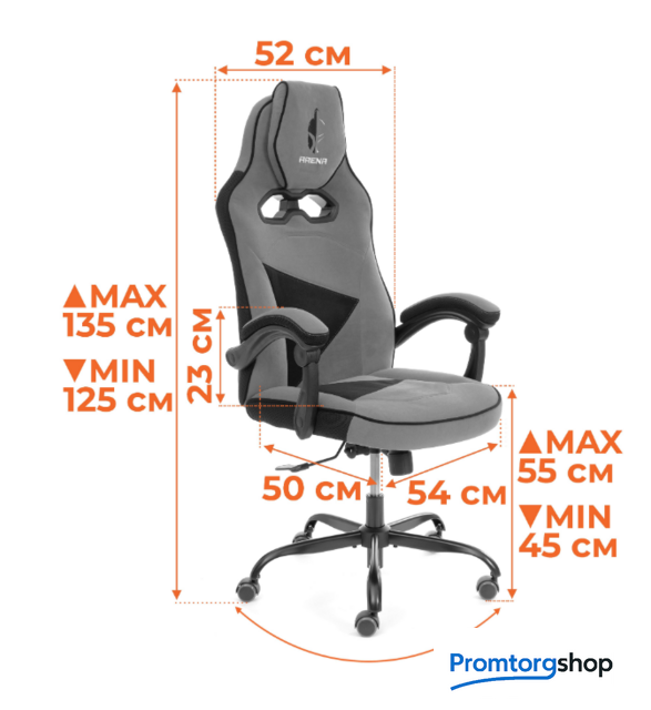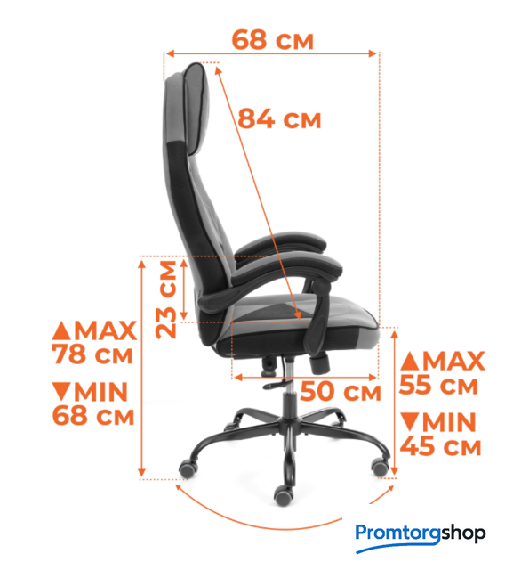 Высота кресла (стула) | Высота по подлокотникам от 45 до 55 см. Высота подлокотника 23 см |