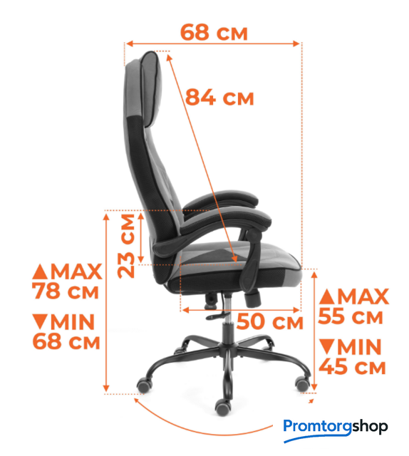 Высота кресла (стула) | Высота по подлокотникам от 45 до 55 см. Высота подлокотника 23 см |